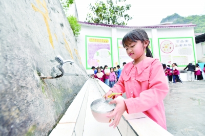 十几年前,学校仅有一个不足100立方米的水柜,用于收集储存楼顶的雨水,学生用水要定期定量。2021年,当地抗旱应急供水工程投入使用,学校用上了十几公里外的红水河水。 广西壮族自治区大化瑶族自治县是滇黔桂石漠化片区县,地处桂西喀斯特地形地貌中心,恶劣的自然条件严重制约了瑶山的发展。 2012年以来,当地党委、政府持续推进水利基础设施建设,通过大规模修建家庭水柜、引红水河水上山建设供水工程、建造水库等措施,逐步解决农村供水不稳定和季节性缺水等短板弱项问题。 如今,一条条水管跨越重重大山,将河水引进村寨;一座座水柜矗立在崇山峻岭间,承接雨水。越来越多的群众用上了自来水。据统计,截至目前,全县共建成集中供水工程、家庭水柜1万多处(座),巩固和保障全县农村20多万人的饮水安全。