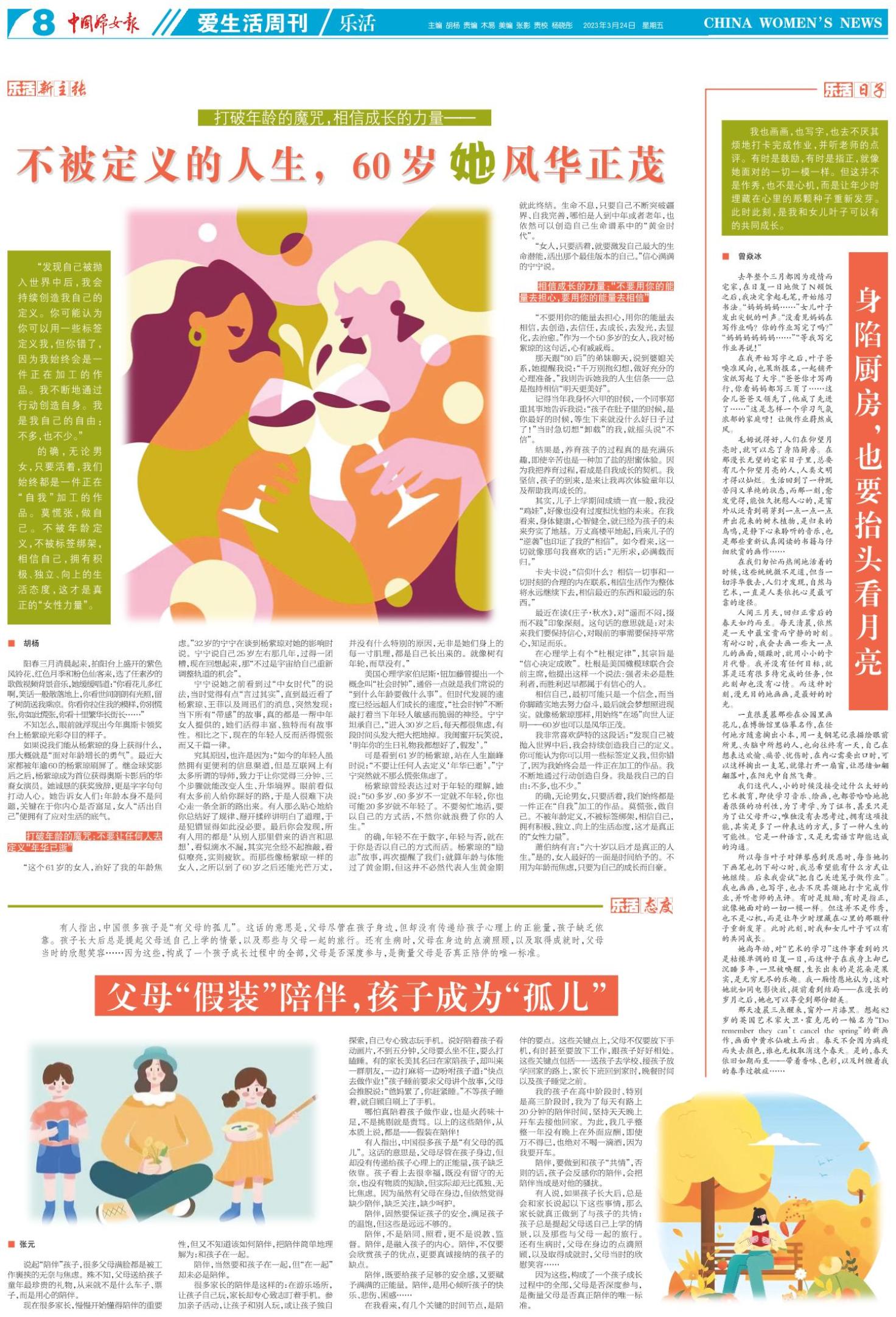 《中国妇女报》(电子版)的一切内容(包括但不限于文字、图片、PDF、图表、标志、标识、商标、版面设计、专栏目录与名称、内容分类标准以及为读者提供的任何信息)仅供中国妇女报读者阅读、学习研究使用,未经中国妇女报及/或相关权利人书面授权,任何单位及个人不得将《中国妇女报》(电子版)所登载、发布的内容用于商业性目的,包括但不限于转载、复制、发行、制作光盘、数据库、触摸展示等行为方式,或将之在非本站所属的服务器上作镜像。否则,中国妇女报将采取包括但不限于网上公示、向有关部门举报、诉讼等一切合法手段,追究侵权者的法律责任。