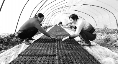 ▲ 3月14日,在江苏省连云港市灌云县同兴镇轴北村的蔬菜大棚里,村民正忙着往育秧盘里摆放西瓜种子。