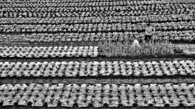 ▲ 3月13日,江西省吉安市永丰县佐龙乡邓家村农民正在进行蔬菜田间管理。