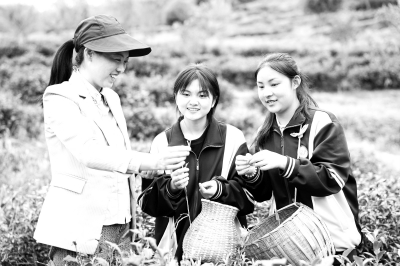 3月29日,在紫阳县洄水镇茶稻村,紫阳县职业教育中心茶叶专业老师王琳(左一)与正在采茶的学生交流。 陕西省安康市紫阳县是全国重点产茶县,共发展茶园26万亩。眼下,当地茶园全面进入采摘期,紫阳县职业教育中心茶叶专业的师生一起上茶山、进茶厂,开展茶叶采摘、制茶工艺、茶叶审评等实训课程,提高学生的实践技能。 新华社记者 邵瑞/摄