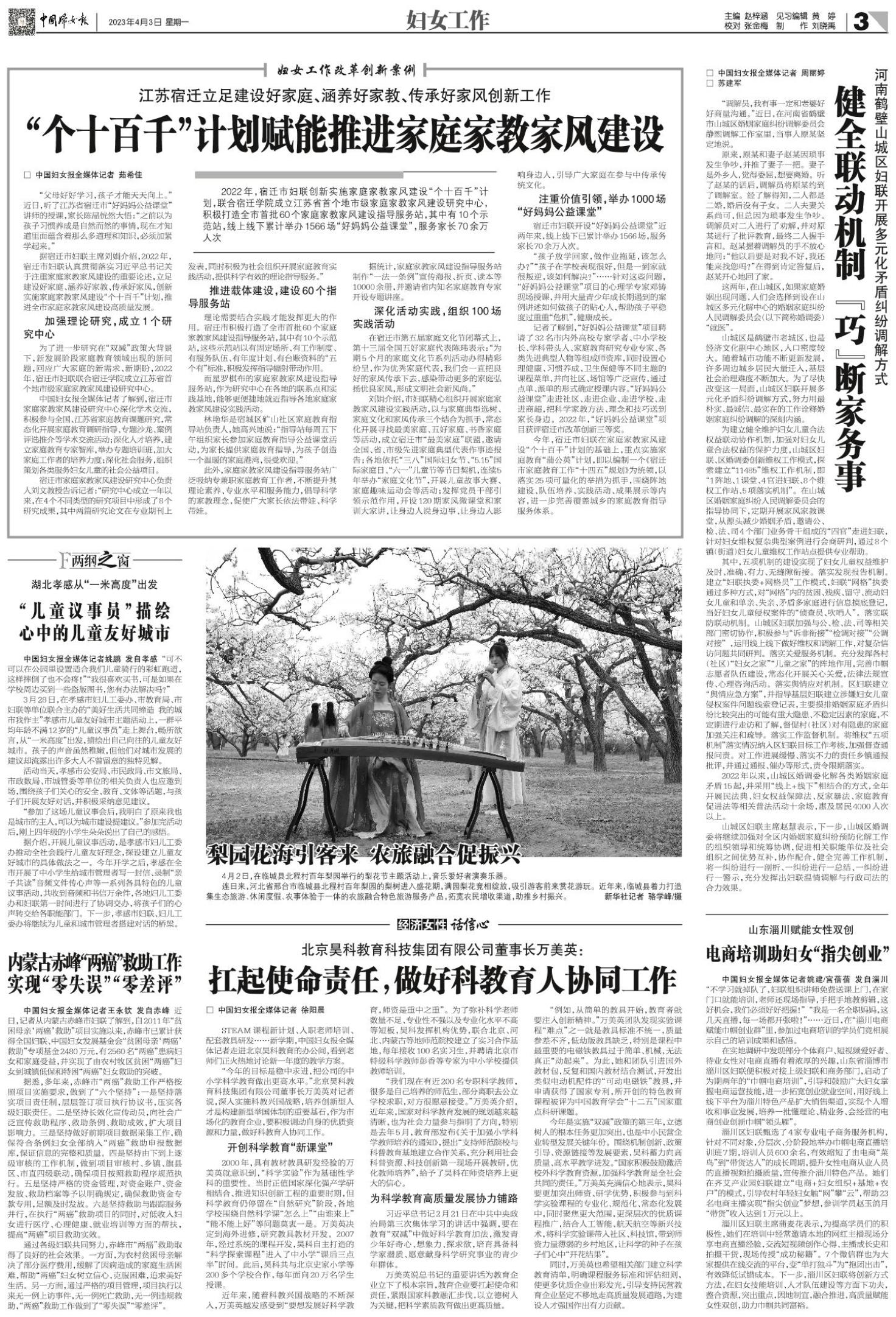《中国妇女报》(电子版)的一切内容(包括但不限于文字、图片、PDF、图表、标志、标识、商标、版面设计、专栏目录与名称、内容分类标准以及为读者提供的任何信息)仅供中国妇女报读者阅读、学习研究使用,未经中国妇女报及/或相关权利人书面授权,任何单位及个人不得将《中国妇女报》(电子版)所登载、发布的内容用于商业性目的,包括但不限于转载、复制、发行、制作光盘、数据库、触摸展示等行为方式,或将之在非本站所属的服务器上作镜像。否则,中国妇女报将采取包括但不限于网上公示、向有关部门举报、诉讼等一切合法手段,追究侵权者的法律责任。