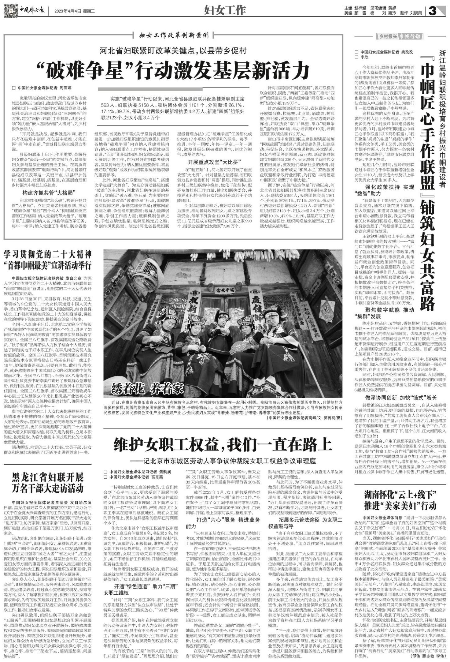 《中国妇女报》(电子版)的一切内容(包括但不限于文字、图片、PDF、图表、标志、标识、商标、版面设计、专栏目录与名称、内容分类标准以及为读者提供的任何信息)仅供中国妇女报读者阅读、学习研究使用,未经中国妇女报及/或相关权利人书面授权,任何单位及个人不得将《中国妇女报》(电子版)所登载、发布的内容用于商业性目的,包括但不限于转载、复制、发行、制作光盘、数据库、触摸展示等行为方式,或将之在非本站所属的服务器上作镜像。否则,中国妇女报将采取包括但不限于网上公示、向有关部门举报、诉讼等一切合法手段,追究侵权者的法律责任。