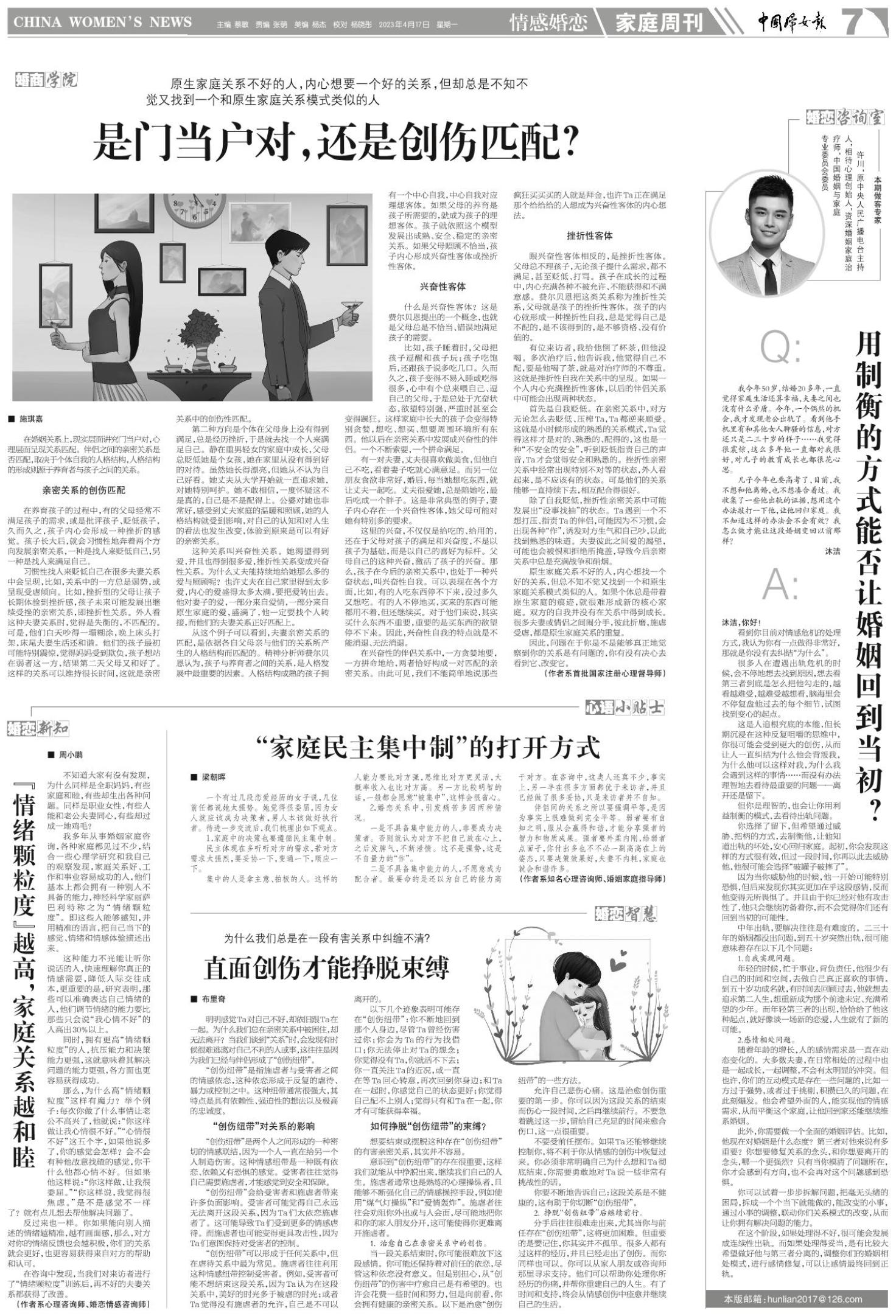 《中国妇女报》(电子版)的一切内容(包括但不限于文字、图片、PDF、图表、标志、标识、商标、版面设计、专栏目录与名称、内容分类标准以及为读者提供的任何信息)仅供中国妇女报读者阅读、学习研究使用,未经中国妇女报及/或相关权利人书面授权,任何单位及个人不得将《中国妇女报》(电子版)所登载、发布的内容用于商业性目的,包括但不限于转载、复制、发行、制作光盘、数据库、触摸展示等行为方式,或将之在非本站所属的服务器上作镜像。否则,中国妇女报将采取包括但不限于网上公示、向有关部门举报、诉讼等一切合法手段,追究侵权者的法律责任。
