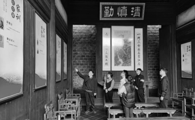 3月27日,记者采访当天,来自江西省共青城市的徐先生和爱人带着两个女儿,一家四口长时间流连于汪山土库。夫妻二人一路认真感悟程氏家风,一路教导女儿要“勤勉读书,励志向上”。