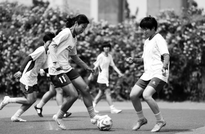 4月19日,在安徽省合肥市裕溪路学校,女足队员进行足球训练。 合肥市裕溪路学校为合肥市足球特色学校,于2007年成立青少年女子足球队。目前,学校练习足球的女生有200多人,连续多次代表合肥市参加国家级、省级足球赛事。近年来,学校持续普及开展足球运动,促进学生健康成长。 新华社发(解琛/摄)