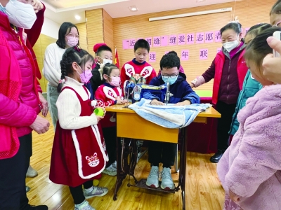 为方便居民,“缝爱社”每周都会在社区摆台缝补。“‘缝爱社’的阿姨口袋里每天都装着针线,随时都能帮忙缝补。”郑桂林笑着说,队员们几乎都参加了两个以上的爱心社团,开展其他公益服务的时候,看到有破旧的衣物立刻就能掏出针线缝补。