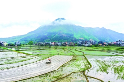 4月20日,在湖南省常宁市庙前镇双凤村,农民驾驶农机在整理田地(无人机照片)。 谷雨时节,各地抢抓农时进行农业生产,到处都是忙碌的身影。新华社发(周秀鱼春/摄)