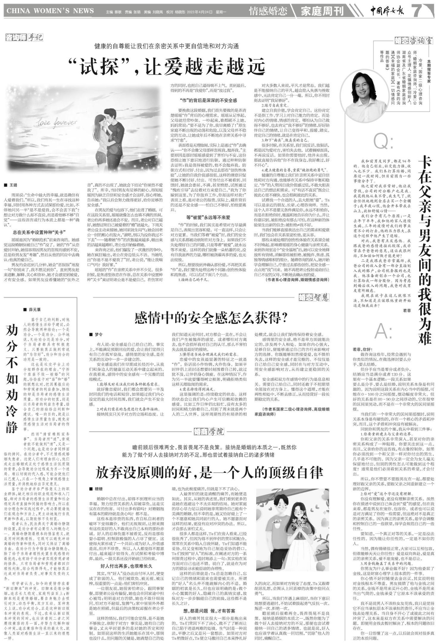 《中国妇女报》(电子版)的一切内容(包括但不限于文字、图片、PDF、图表、标志、标识、商标、版面设计、专栏目录与名称、内容分类标准以及为读者提供的任何信息)仅供中国妇女报读者阅读、学习研究使用,未经中国妇女报及/或相关权利人书面授权,任何单位及个人不得将《中国妇女报》(电子版)所登载、发布的内容用于商业性目的,包括但不限于转载、复制、发行、制作光盘、数据库、触摸展示等行为方式,或将之在非本站所属的服务器上作镜像。否则,中国妇女报将采取包括但不限于网上公示、向有关部门举报、诉讼等一切合法手段,追究侵权者的法律责任。