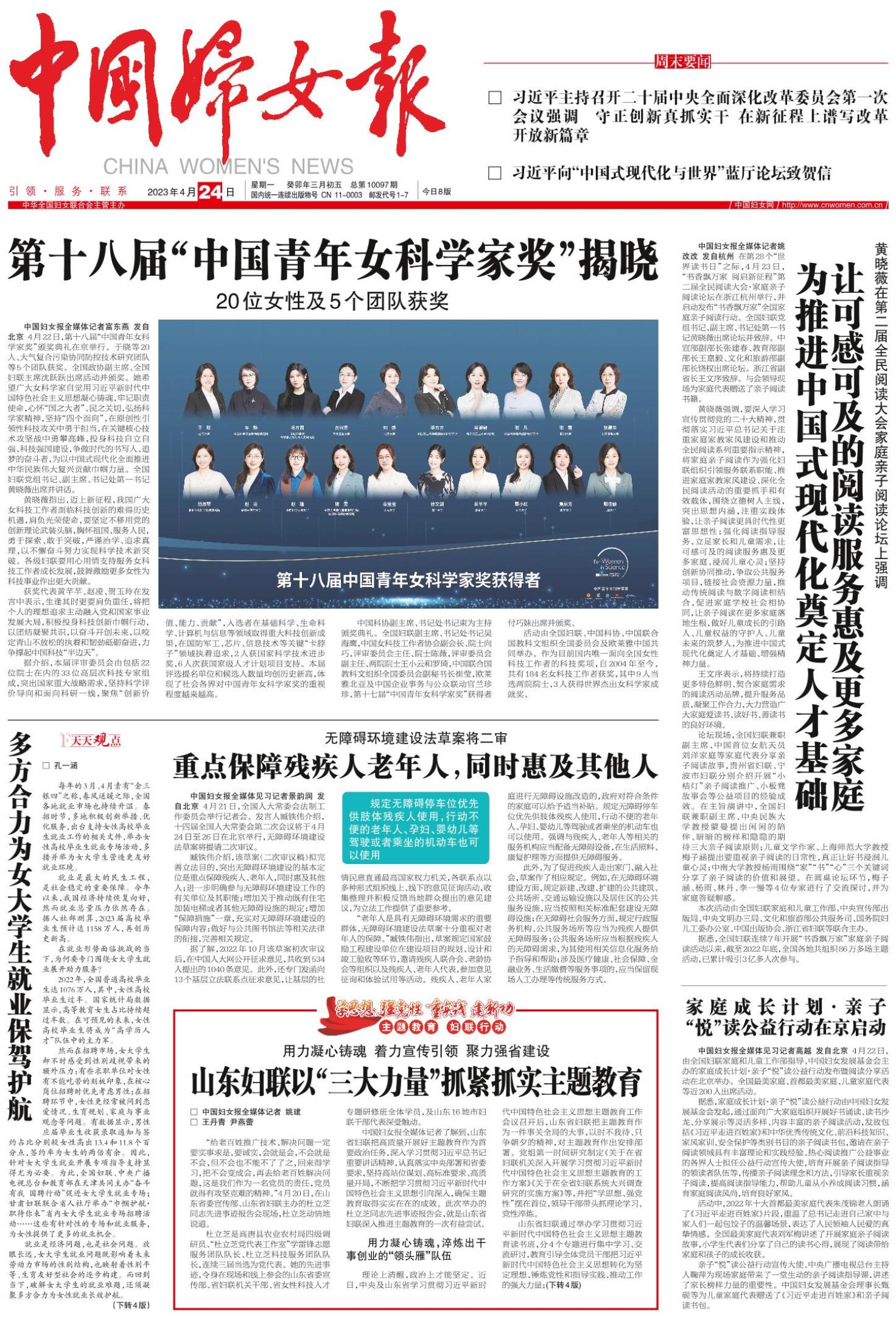 《中国妇女报》(电子版)的一切内容(包括但不限于文字、图片、PDF、图表、标志、标识、商标、版面设计、专栏目录与名称、内容分类标准以及为读者提供的任何信息)仅供中国妇女报读者阅读、学习研究使用,未经中国妇女报及/或相关权利人书面授权,任何单位及个人不得将《中国妇女报》(电子版)所登载、发布的内容用于商业性目的,包括但不限于转载、复制、发行、制作光盘、数据库、触摸展示等行为方式,或将之在非本站所属的服务器上作镜像。否则,中国妇女报将采取包括但不限于网上公示、向有关部门举报、诉讼等一切合法手段,追究侵权者的法律责任。