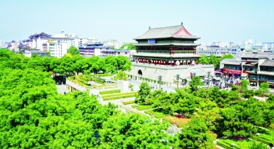 雄踞关中平原中部,北望苍莽黄土高原,南依巍峨秦岭,西安,作为一座拥有3100多年建城史,1100多年建都史的历史文化名城,先后有十三个王朝在此演绎了无数的悲欢离合。一个个文化地标,记录着这座城市在岁月长河中的绝代风华,流淌着生生不息的历史文脉。 作为西安文化地标之一的西安鼓楼,始建于明洪武十三年(1380年),昔日楼上放置巨鼓一面,每日击鼓报时,故名“鼓楼”。鼓楼为砖木结构,通高34米,因与钟楼同属重檐三滴水楼阁式建筑,两楼互称“姐妹楼”或“文武楼”。 鼓楼的南北屋檐下各悬一块匾额,南曰“文武盛地”,北曰“声闻于天”。晨钟暮鼓,声闻四达。 新华社发(刘潇/摄)