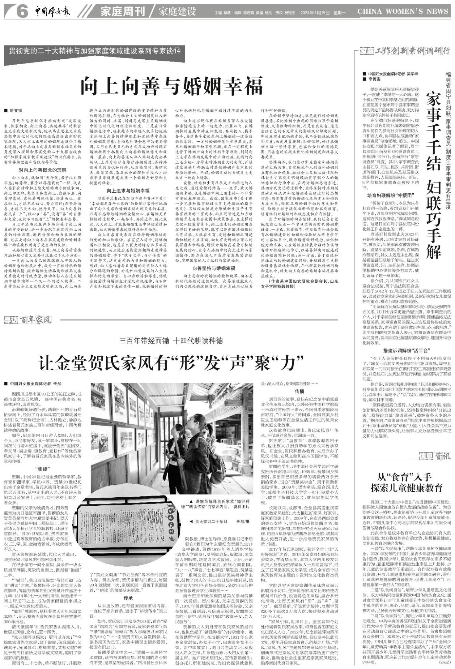 如今,纪念馆内日日游人如织,人们或个人、或同事好友、或一家老小,穿梭在一间间灰瓦白墙木桩房中,沉浸于贺氏“爱国家、孝父母、端志趣、重教育、勤耕作”等优良家风家训中,了解着贺氏家风在族内族外的传承和传播。