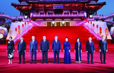 新华社西安5月18日电(记者 温馨 蔡馨逸) 5月18日晚,国家主席习近平和夫人彭丽媛在陕西省西安市大唐芙蓉园为出席中国—中亚峰会的中亚国家元首夫妇举行欢迎仪式和欢迎宴会。