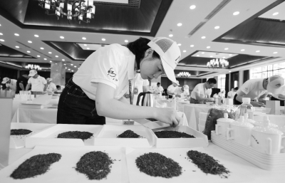 5月27日,一名选手在参加茶叶拼配比赛。当日,由农业农村部、人力资源和社会保障部、中华全国总工会联合主办的第五届全国农业行业职业技能大赛茶叶加工赛项决赛在广西壮族自治区三江侗族自治县举行,来自全国17个省份的71名选手同场竞技,通过茶叶拼配、手工制茶等技能比赛,大力弘扬工匠精神,助力提升茶叶加工水平,促进茶产业高质量发展,全力推进乡村产业振兴。中国妇女报全媒体记者高峰/文 龚普康/图