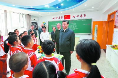 习近平随后来到五年级教师办公室,看望正在研讨备课的老师们,询问课后服务课程结构设置等情况。习近平指出,中国特色社会主义教育体系是好的,我国的基础教育在世界上是有优势的,要坚定文化自信,把自己好的东西坚持好,把国外好的东西借鉴好,与时俱进、开放发展,让孩子们有更广阔的眼界、更开阔的思路、更开放的观念,努力培养堪当民族复兴重任、勇于创造世界奇迹的国之栋梁。习近平强调,人才培养,关键在教师。广大教师要牢记为党育人、为国育才的初心使命,以人民教育家为榜样,以德立身、以德立学、以德施教。要在全社会营造尊师重教的良好风尚,让教师成为最受社会尊重和令人羡慕的职业,努力形成优秀人才争相从教、优秀教师不断涌现的良好局面。