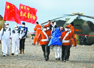 新华社酒泉6月4日电 6月4日6时33分,神舟十五号载人飞船返回舱在东风着陆场成功着陆,航天员费俊龙、邓清明、张陆全部安全顺利出舱,神舟十五号载人飞行任务取得圆满成功。