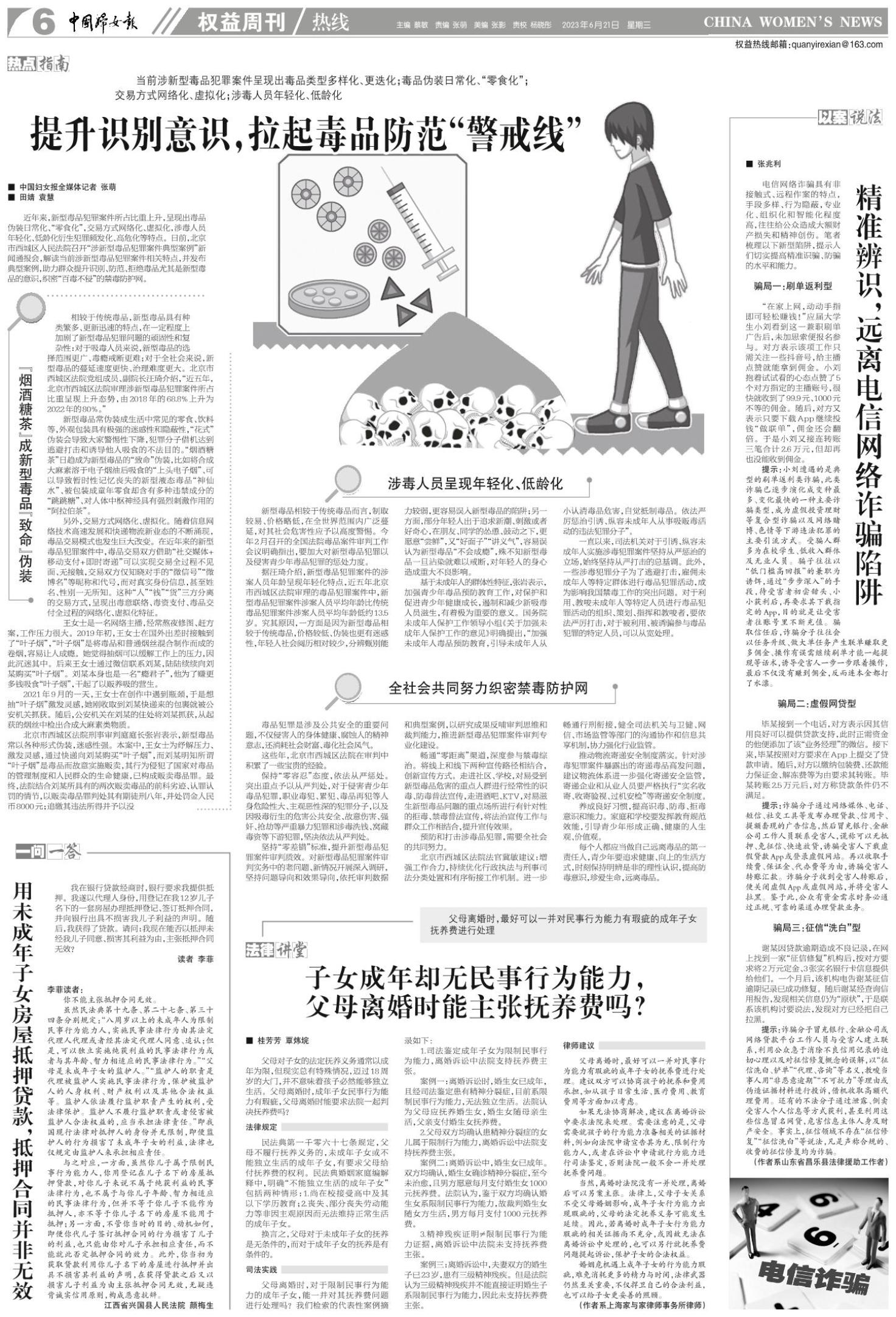 《中国妇女报》(电子版)的一切内容(包括但不限于文字、图片、PDF、图表、标志、标识、商标、版面设计、专栏目录与名称、内容分类标准以及为读者提供的任何信息)仅供中国妇女报读者阅读、学习研究使用,未经中国妇女报及/或相关权利人书面授权,任何单位及个人不得将《中国妇女报》(电子版)所登载、发布的内容用于商业性目的,包括但不限于转载、复制、发行、制作光盘、数据库、触摸展示等行为方式,或将之在非本站所属的服务器上作镜像。否则,中国妇女报将采取包括但不限于网上公示、向有关部门举报、诉讼等一切合法手段,追究侵权者的法律责任。