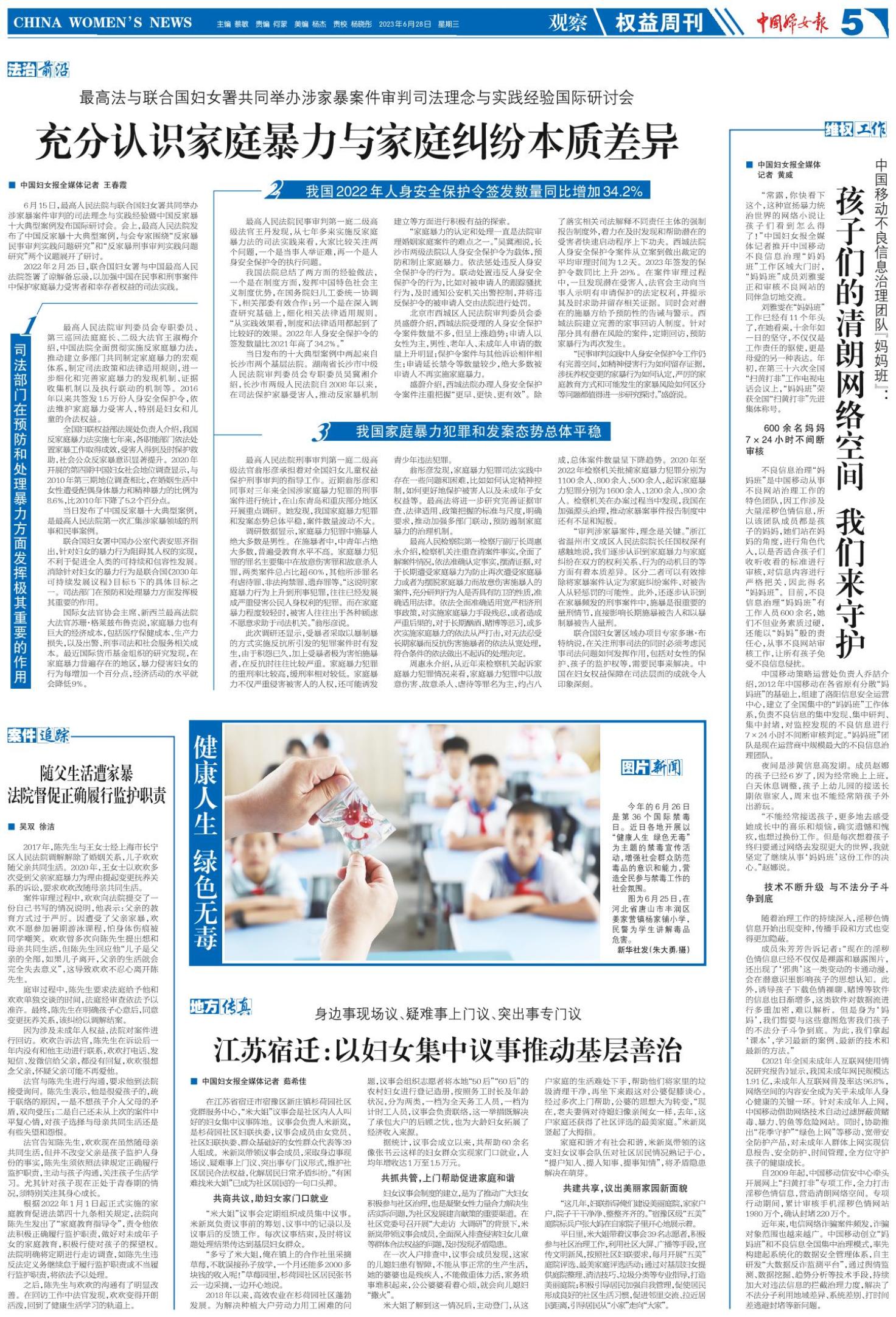 《中国妇女报》(电子版)的一切内容(包括但不限于文字、图片、PDF、图表、标志、标识、商标、版面设计、专栏目录与名称、内容分类标准以及为读者提供的任何信息)仅供中国妇女报读者阅读、学习研究使用,未经中国妇女报及/或相关权利人书面授权,任何单位及个人不得将《中国妇女报》(电子版)所登载、发布的内容用于商业性目的,包括但不限于转载、复制、发行、制作光盘、数据库、触摸展示等行为方式,或将之在非本站所属的服务器上作镜像。否则,中国妇女报将采取包括但不限于网上公示、向有关部门举报、诉讼等一切合法手段,追究侵权者的法律责任。