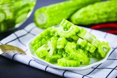 苦瓜虽其貌不扬,但它的别称却很好听,因为它的皮像荔枝壳般凹凸不平,有人就叫它“锦荔子”。又因它成熟后,瓜瓤呈艳丽的红色,赤子如珠,就取名为“红姑娘”,一下子成了蔬菜中的娇娘子。苦瓜,还有一个意味深长的名字——君子菜。