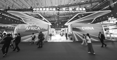 6月29日,在长沙国际会展中心,参会嘉宾从中非高质量共建“一带一路”成果展展厅前经过。 当日,由商务部和湖南省人民政府共同主办的第三届中国-非洲经贸博览会在长沙开幕。本届博览会以“共谋发展、共享未来”为主题,主会场、主展馆、分展馆分别设在长沙国际会议中心、长沙国际会展中心和中非经贸合作促进创新示范园(湖南高桥大市场),博览会是今年中国同非洲国家在经贸领域最为重要的交流活动之一,将于7月2日闭幕。 新华社记者 陈晔华/摄