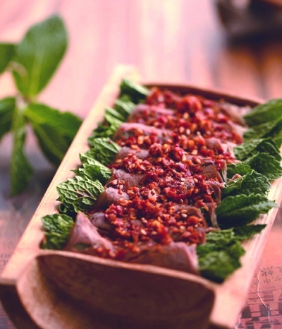 薄荷牛肉、凉拌豆腐丝、菌菇芒果土鸡汤以及过桥米线里,全部都有薄荷的身影。感觉在云南人那里,甭管是肉的还是素的,汤的还是拌的,只需薄荷一把,都能入菜。作为主菜的薄荷很精彩,作为配菜的薄荷也不乏优秀。很显然,薄荷不仅仅在调味,更是横向地将味觉体验拓宽了一个维度。既然咸、辣、鲜、香已经有了,那再来个清香爽口,惊不惊喜?意不意外?