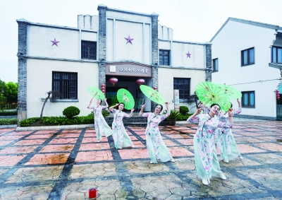7月5日,老年舞蹈队在织里镇伍浦村文化礼堂前排练。    近年来,浙江省湖州市织里镇积极推进农村文化礼堂星级管理运行制度,通过“文化礼堂+村史馆+幸福邻里中心”模式完善村级精神文明阵地,依托数字化手段大力开展一系列形式多样、丰富多彩的特色主题活动。    新华社记者 徐昱/摄