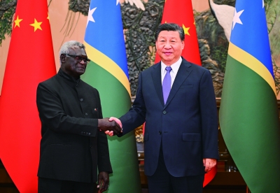 习近平指出,中国和所罗门群岛是彼此值得信赖的好朋友、可以依靠的好兄弟。建交以来,两国友好合作后来居上,走在了中国同太平洋岛国关系前列,成为不同大小国家和发展中国家团结合作、携手发展的典范。事实证明,中所建交顺应时代潮流,契合国际大势,符合两国人民根本利益,是正确选择。中方愿同所方加强战略沟通,深化各领域合作,推动两国全面战略伙伴关系行稳致远、好上加好,更好造福两国人民。