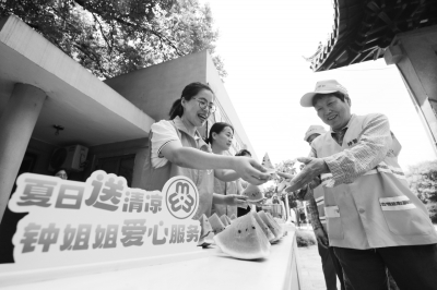 7月11日,浙江省湖州市德清县钟管镇妇联开展“送清凉 送关怀”活动,为辖区环卫工人送去清凉汤、洗漱用品、水果以及防暑药品等,让他们在炎炎夏日感受清凉和关怀。