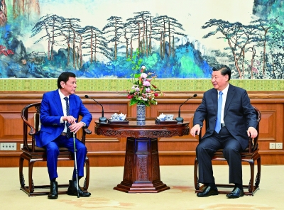 习近平指出,你担任菲律宾总统期间,本着对人民负责、对历史负责的态度,毅然作出改善对华关系的战略选择,中菲关系得以重回正轨并蓬勃发展,为两国友好交往作出重要贡献。中菲同为亚洲发展中国家,两国发展根植于睦邻友好的周边环境,根植于合作共赢的亚洲大家庭。中国奉行亲诚惠容的周边外交理念,一向坚持与邻为善、以邻为伴。中方始终重视中菲关系,愿同菲方一道,推动中菲关系行稳致远。希望你继续为两国友好合作发挥重要作用。