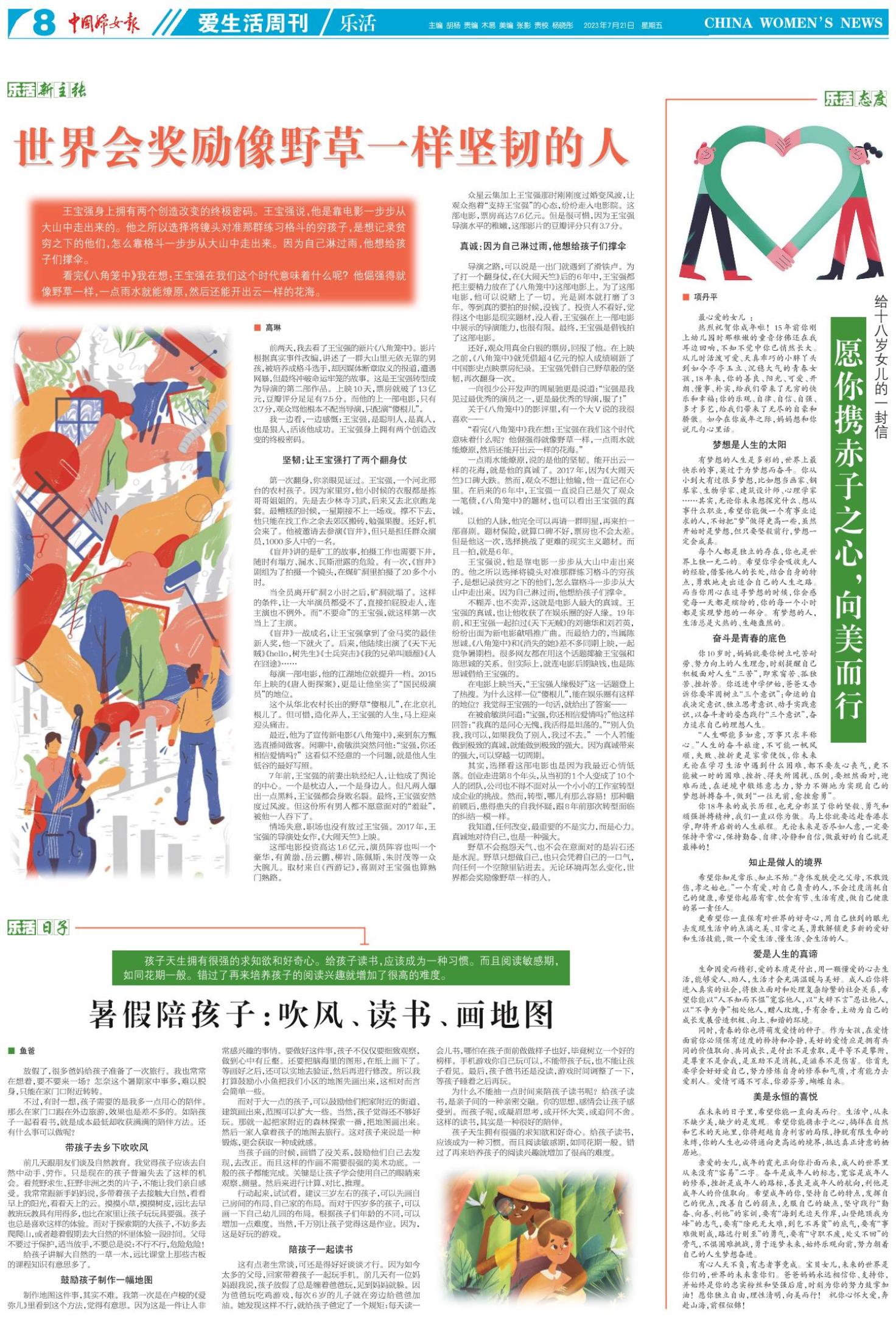 《中国妇女报》(电子版)的一切内容(包括但不限于文字、图片、PDF、图表、标志、标识、商标、版面设计、专栏目录与名称、内容分类标准以及为读者提供的任何信息)仅供中国妇女报读者阅读、学习研究使用,未经中国妇女报及/或相关权利人书面授权,任何单位及个人不得将《中国妇女报》(电子版)所登载、发布的内容用于商业性目的,包括但不限于转载、复制、发行、制作光盘、数据库、触摸展示等行为方式,或将之在非本站所属的服务器上作镜像。否则,中国妇女报将采取包括但不限于网上公示、向有关部门举报、诉讼等一切合法手段,追究侵权者的法律责任。