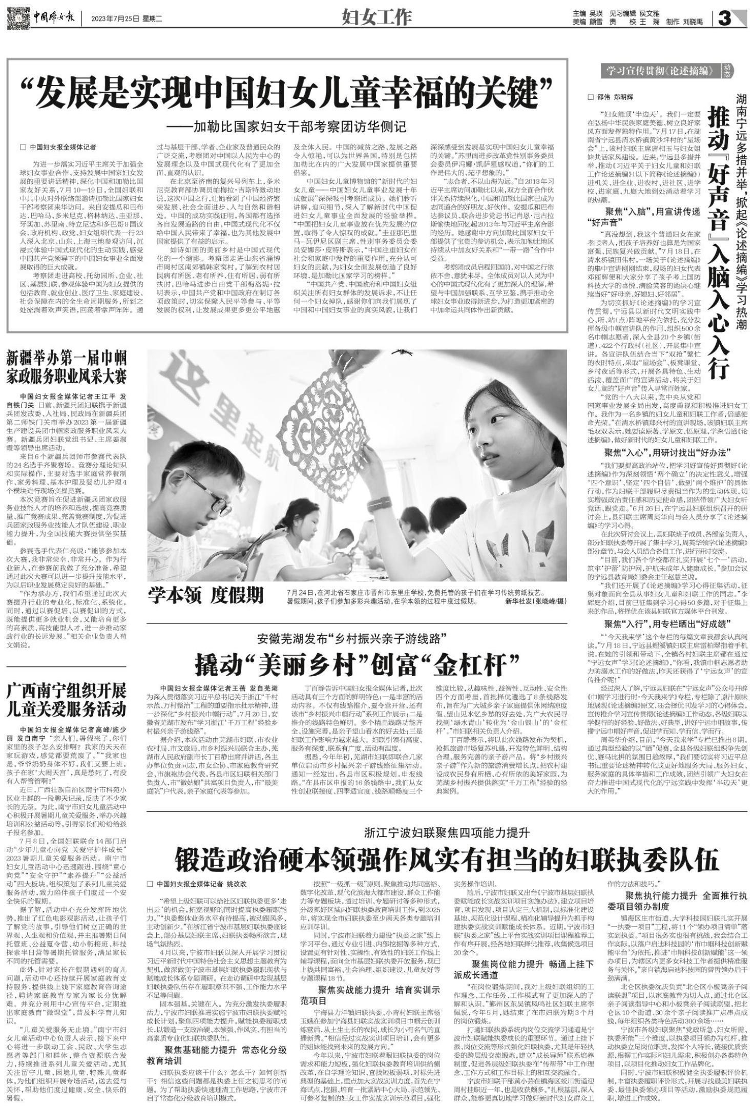 《中国妇女报》(电子版)的一切内容(包括但不限于文字、图片、PDF、图表、标志、标识、商标、版面设计、专栏目录与名称、内容分类标准以及为读者提供的任何信息)仅供中国妇女报读者阅读、学习研究使用,未经中国妇女报及/或相关权利人书面授权,任何单位及个人不得将《中国妇女报》(电子版)所登载、发布的内容用于商业性目的,包括但不限于转载、复制、发行、制作光盘、数据库、触摸展示等行为方式,或将之在非本站所属的服务器上作镜像。否则,中国妇女报将采取包括但不限于网上公示、向有关部门举报、诉讼等一切合法手段,追究侵权者的法律责任。