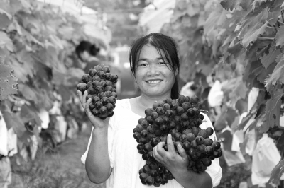 近日,在湖南省永州市宁远县天堂镇大坪岭村白泥井葡萄园里,一串串紫水晶般的葡萄挂满枝头,种植女能手蒋顺娟乐享葡萄丰收。蒋顺娟种植葡萄100多亩,目前已陆续成熟上市。