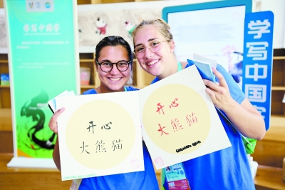 下午两点半,“汉语桥”里前来体验的运动员络绎不绝。体验区为代表团运动员们设计了学汉语、写汉字、描汉字、读诗歌等多个环节,每个环节运动员们都乐此不疲地体验着。