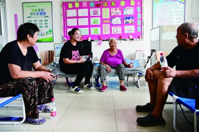 韩中悦在工作期间发现,这些居民中有很多人是带着小朋友来的,作为一名幼儿教师,她很擅长陪小朋友一起玩游戏、做活动,于是她发挥自己的特长,和孩子们围坐在一起看书、画画、捏泥、唱歌、聊天。