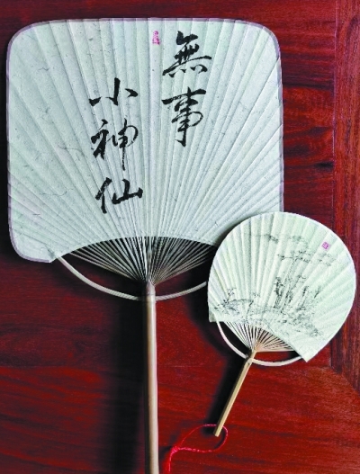 在仓城老街的松江土布展示馆,买回土布拼凑的手工香囊,那时正值端午节前夕。盛夏来临之前,漫游泰晤士小镇,收获了一把纯手工制作的扇子,扇面手书“无事小神仙”,正符合了“此时情绪此时天”。也是在那家手作陶艺店,我给自己找到一只手绘图案的咖啡杯。两样物品合在一起——“行善一辈子”。这是我们送给两个人年龄加起来正好一百岁的生日礼物……