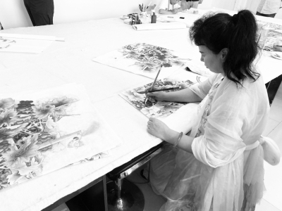 今年50岁的王善花不善言辞,可握着笔、聊起画,她就有说不完的话。“有时间就在这儿画上一整天,没时间就来画几个小时。在这里,我觉得日子更有意义了。”