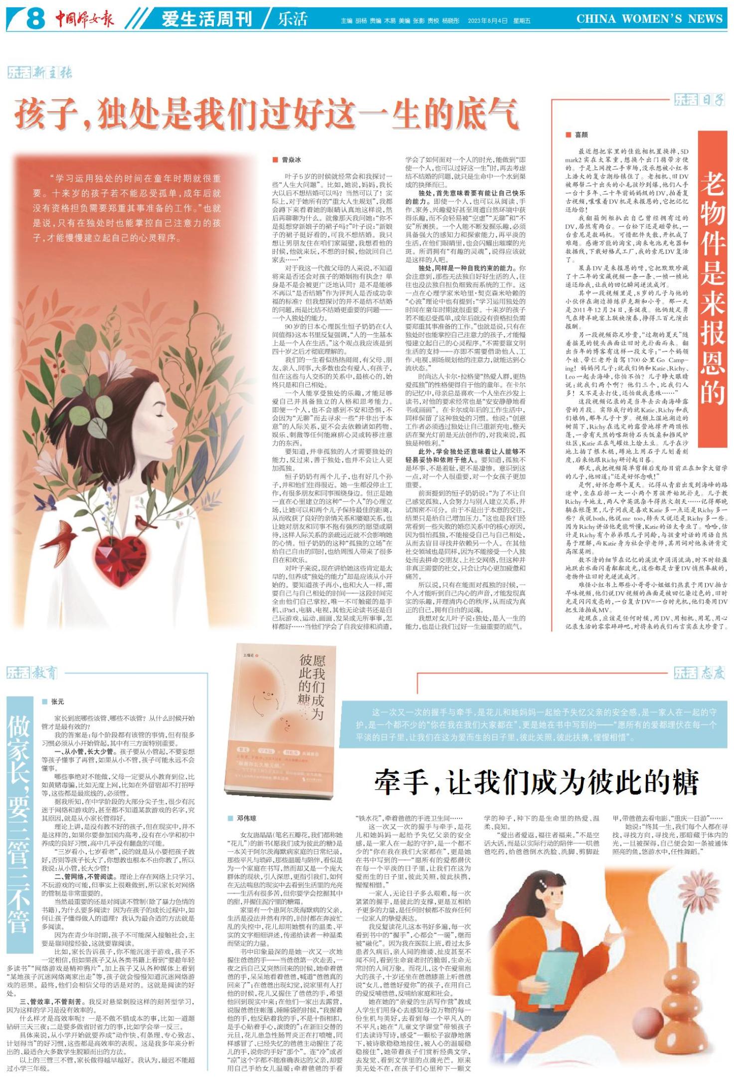 《中国妇女报》(电子版)的一切内容(包括但不限于文字、图片、PDF、图表、标志、标识、商标、版面设计、专栏目录与名称、内容分类标准以及为读者提供的任何信息)仅供中国妇女报读者阅读、学习研究使用,未经中国妇女报及/或相关权利人书面授权,任何单位及个人不得将《中国妇女报》(电子版)所登载、发布的内容用于商业性目的,包括但不限于转载、复制、发行、制作光盘、数据库、触摸展示等行为方式,或将之在非本站所属的服务器上作镜像。否则,中国妇女报将采取包括但不限于网上公示、向有关部门举报、诉讼等一切合法手段,追究侵权者的法律责任。