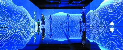 暑假期间,小朋友和家长在浙江省嘉兴市图书馆元宇宙阅读体验馆通过环幕体感投影,学习山脉山峰知识。