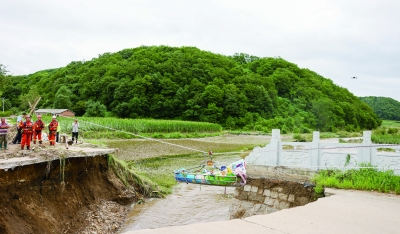 8月6日,吉林市消防救援支队队员利用绳桥解救受困村民。