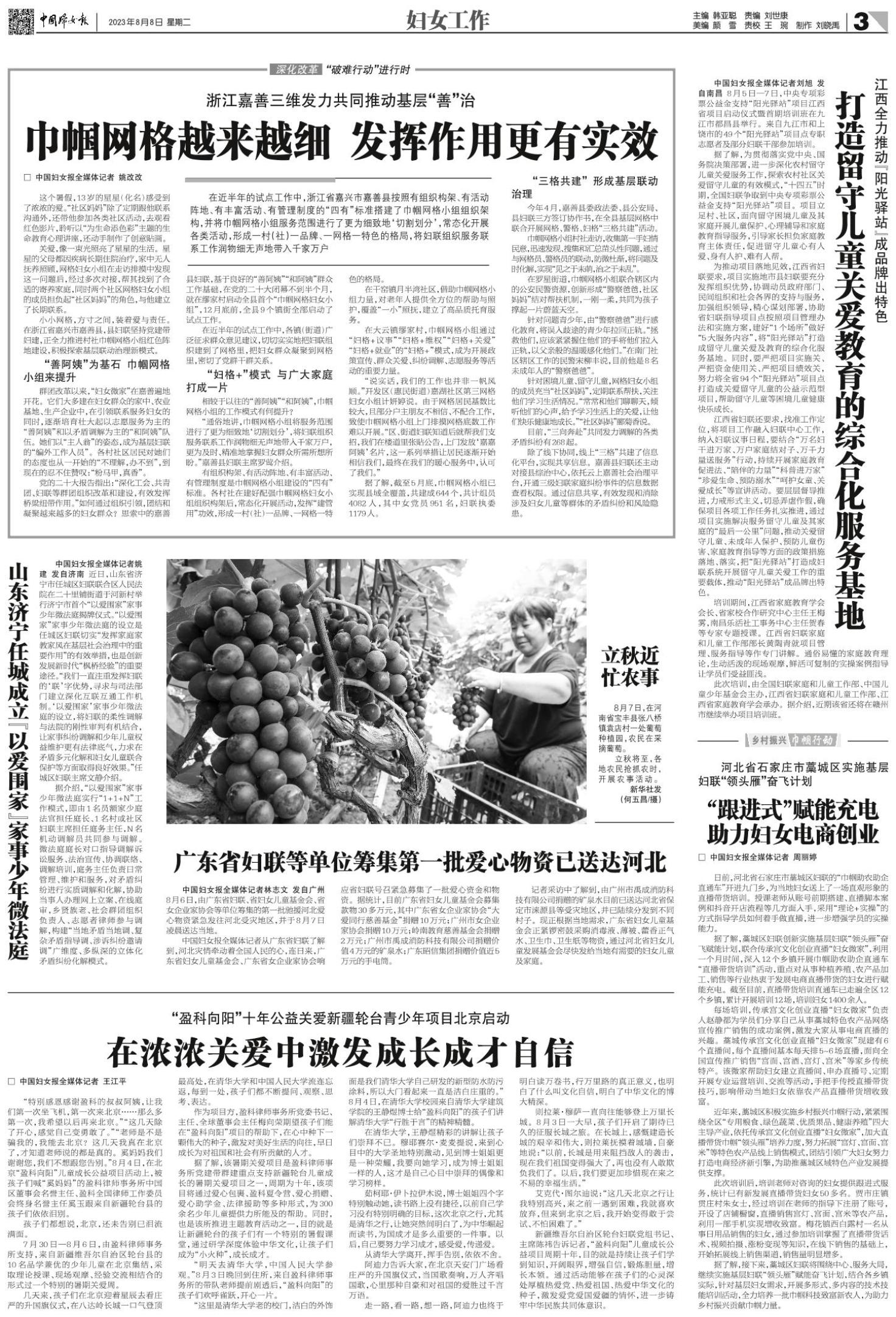 《中国妇女报》(电子版)的一切内容(包括但不限于文字、图片、PDF、图表、标志、标识、商标、版面设计、专栏目录与名称、内容分类标准以及为读者提供的任何信息)仅供中国妇女报读者阅读、学习研究使用,未经中国妇女报及/或相关权利人书面授权,任何单位及个人不得将《中国妇女报》(电子版)所登载、发布的内容用于商业性目的,包括但不限于转载、复制、发行、制作光盘、数据库、触摸展示等行为方式,或将之在非本站所属的服务器上作镜像。否则,中国妇女报将采取包括但不限于网上公示、向有关部门举报、诉讼等一切合法手段,追究侵权者的法律责任。