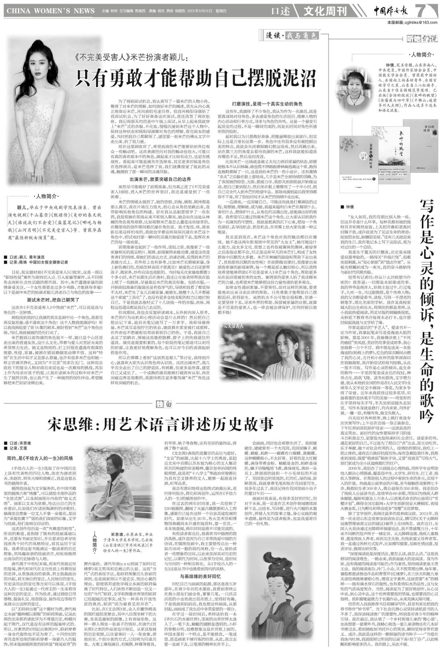 《中国妇女报》(电子版)的一切内容(包括但不限于文字、图片、PDF、图表、标志、标识、商标、版面设计、专栏目录与名称、内容分类标准以及为读者提供的任何信息)仅供中国妇女报读者阅读、学习研究使用,未经中国妇女报及/或相关权利人书面授权,任何单位及个人不得将《中国妇女报》(电子版)所登载、发布的内容用于商业性目的,包括但不限于转载、复制、发行、制作光盘、数据库、触摸展示等行为方式,或将之在非本站所属的服务器上作镜像。否则,中国妇女报将采取包括但不限于网上公示、向有关部门举报、诉讼等一切合法手段,追究侵权者的法律责任。