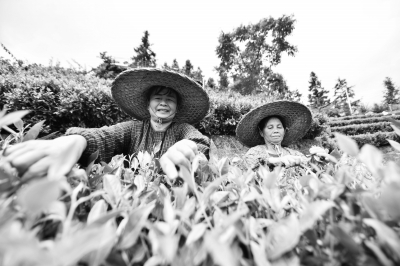 在融水苗族自治县融水镇新安村水融香茶园茶叶种植基地,茶农在采摘茶叶(8月9日摄)。    近年来,广西融水苗族自治县在结对帮扶的广东省廉江市支持下,充分利用特色茶业资源,投入粤桂协作帮扶资金,积极发展茶旅融合产业,建设“一二三产业”融合发展的现代特色农业产业综合示范园区,推动茶产业高质量发展,助力乡村振兴。    2017年9月,广东廉江市和广西融水苗族自治县签订协作框架协议。多年来,两地发挥各自优势,在茶业、文旅、电商、农林等领域,持续开展粤桂东西部协作。    新华社记者 黄孝邦/摄