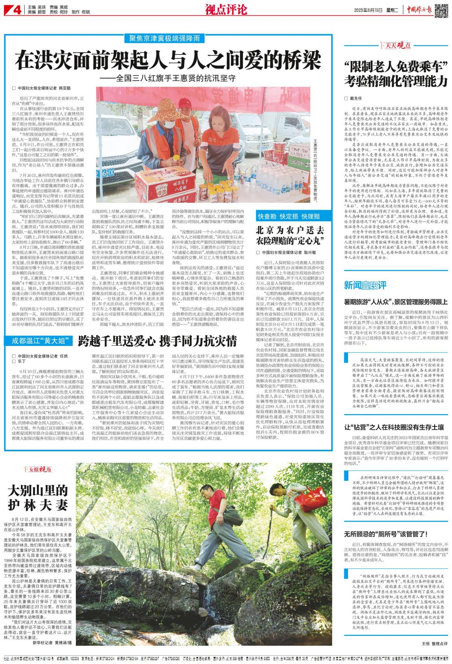 《中国妇女报》(电子版)的一切内容(包括但不限于文字、图片、PDF、图表、标志、标识、商标、版面设计、专栏目录与名称、内容分类标准以及为读者提供的任何信息)仅供中国妇女报读者阅读、学习研究使用,未经中国妇女报及/或相关权利人书面授权,任何单位及个人不得将《中国妇女报》(电子版)所登载、发布的内容用于商业性目的,包括但不限于转载、复制、发行、制作光盘、数据库、触摸展示等行为方式,或将之在非本站所属的服务器上作镜像。否则,中国妇女报将采取包括但不限于网上公示、向有关部门举报、诉讼等一切合法手段,追究侵权者的法律责任。