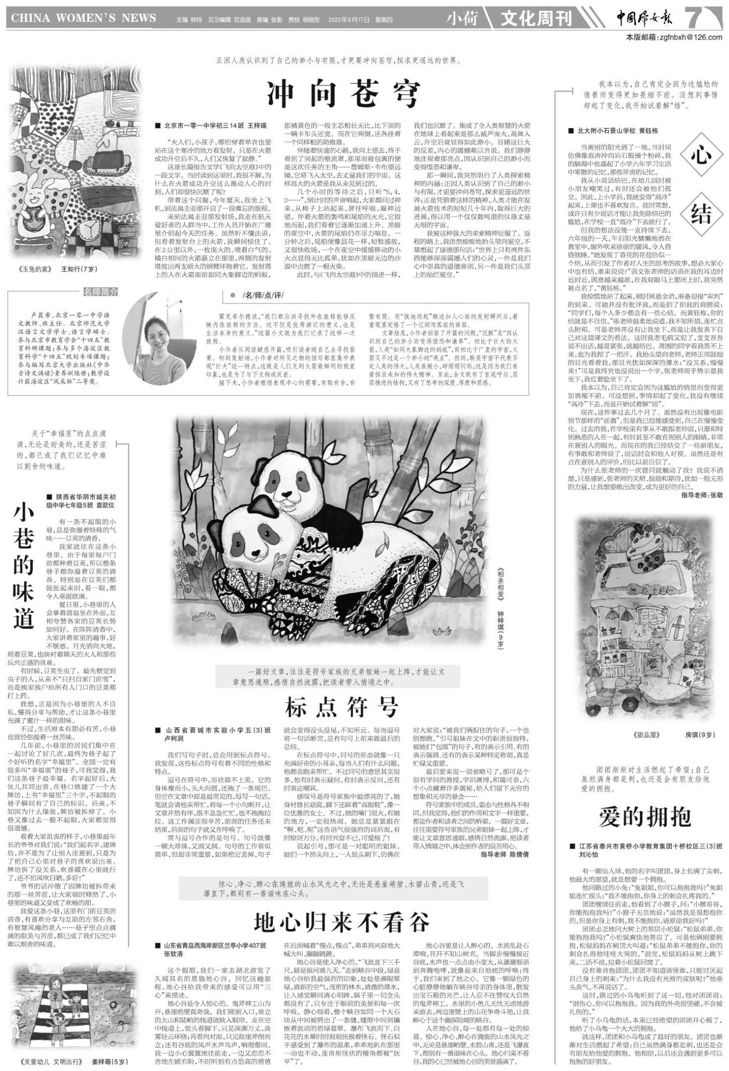 《中国妇女报》(电子版)的一切内容(包括但不限于文字、图片、PDF、图表、标志、标识、商标、版面设计、专栏目录与名称、内容分类标准以及为读者提供的任何信息)仅供中国妇女报读者阅读、学习研究使用,未经中国妇女报及/或相关权利人书面授权,任何单位及个人不得将《中国妇女报》(电子版)所登载、发布的内容用于商业性目的,包括但不限于转载、复制、发行、制作光盘、数据库、触摸展示等行为方式,或将之在非本站所属的服务器上作镜像。否则,中国妇女报将采取包括但不限于网上公示、向有关部门举报、诉讼等一切合法手段,追究侵权者的法律责任。