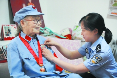 2017年,曾参加过抗美援朝战争的老革命金增兰在自己82岁高龄这一年,从外地迁居到黄冬青管辖的马山社区,这一住就是7个年头。她说,“这几年,多亏了黄警官,他带我看病买药、贴春联。今年八一建军节前,他还和同事来看我,和我一起回忆抗美援朝的岁月,还给我做了一张大大的军装照,那可是我一生的荣耀和骄傲”。