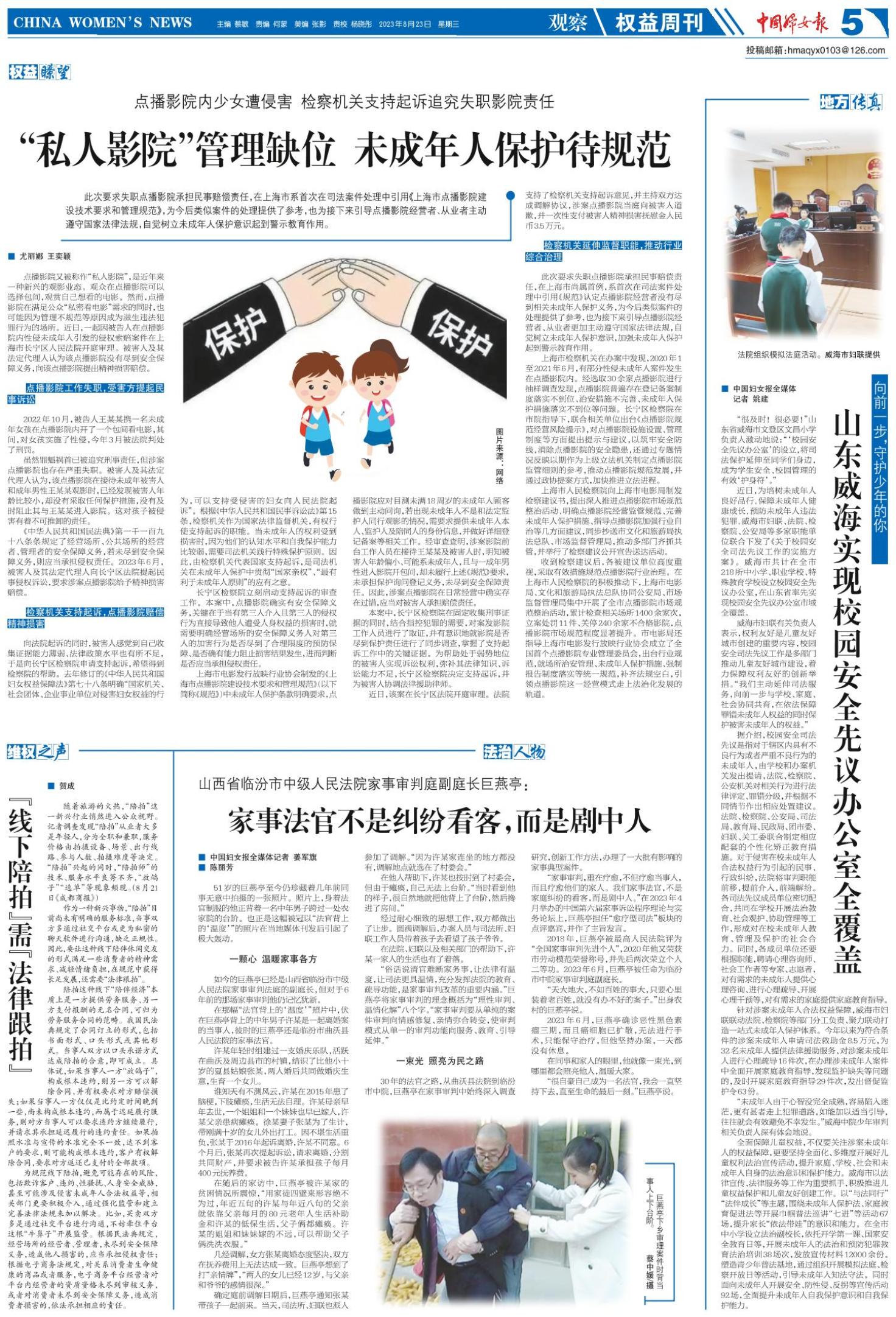 《中国妇女报》(电子版)的一切内容(包括但不限于文字、图片、PDF、图表、标志、标识、商标、版面设计、专栏目录与名称、内容分类标准以及为读者提供的任何信息)仅供中国妇女报读者阅读、学习研究使用,未经中国妇女报及/或相关权利人书面授权,任何单位及个人不得将《中国妇女报》(电子版)所登载、发布的内容用于商业性目的,包括但不限于转载、复制、发行、制作光盘、数据库、触摸展示等行为方式,或将之在非本站所属的服务器上作镜像。否则,中国妇女报将采取包括但不限于网上公示、向有关部门举报、诉讼等一切合法手段,追究侵权者的法律责任。
