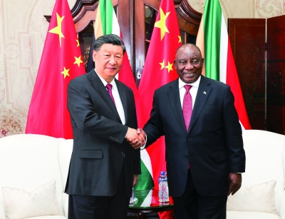 习近平指出,近年来,金砖国家秉持开放包容、合作共赢的金砖精神,书写了不同制度、不同文化、不同地域国家携手发展的精彩故事,成为南南合作的一面金字招牌。南非为这次金砖国家领导人会晤作出精心筹备,我对此高度赞赏。我期待同金砖国家领导人一道,共商新时代金砖团结发展大计,推动会晤取得丰硕成果,推动全球治理朝着更加公正合理的方向发展。