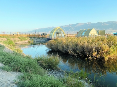 溪流清澈蜿蜒流淌,一片片的芦苇荡在阳光的照射下金光闪闪,金秋韵味十足。这片背靠东天山的草原湿地,无疑是生态改善与产业发展最生动的案例。