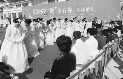 新人们在婚礼上集体拜谢父母。延边州妇联供图