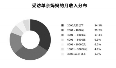 2019年,中国婚姻家庭研究会等发布的《十城市单亲妈妈生活状况及需求调研报告》显示,独抚妈妈普遍面临经济压力。64.5%的单亲妈妈月收入在4000元以下,近八成单亲妈妈无法取得抚养费。如果拿不到抚养费,25.6%生活在一线城市的独抚妈妈处于低保水平。